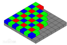 拜尔式是用4个像素的组合计算得到一个像素点的数据,因此需要4个像素相当于色轮滤光片式的像素。如6100万色轮滤光片式的像素9568×6380,对应拜尔式只相当于4784×3190=1526万像素(实际应用中会用算法得到更多的像素点,本质上是有像素损失的)。